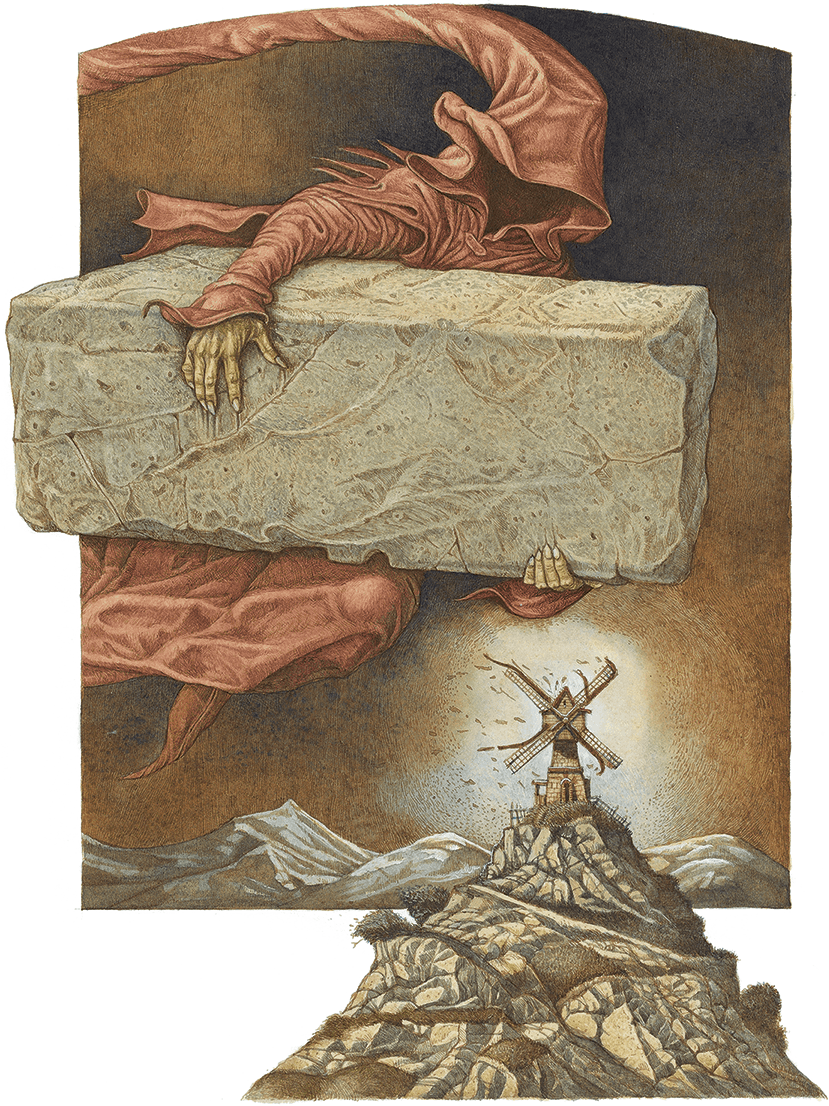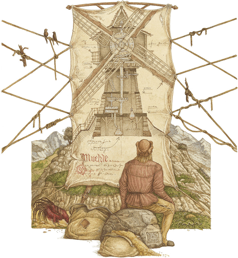 Построил однажды мельник на склоне горы ветряную мельницу. Но место он выбрал не совсем удачное, и не хватало той мельнице ветра. Захотелось ему построить мельницу на самой вершине горы. Однако выполнить такую задачу человеческими руками было невозможно. Не видать мне покоя, думал мельник, до тех пор, пока там, на вершине, не будет стоять моя собственная мельница. И так упорствовал он в своих мыслях, что явился ему однажды чёрт.