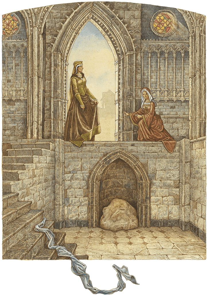 И супруга зодчего отвела хитрую собеседницу в одну из ещё недостроенных башен собора. Там она и показала место, где под тяжёлым камнем был скрыт водяной источник.