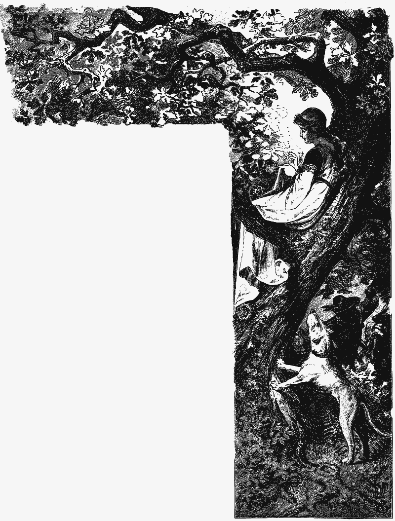 Много времени провела она так, и случилось, что король той страны охотился в лесу, и его охотники наехали на дерево, на котором сидела девушка. Окликнули они её и спрашивают: