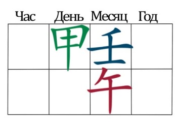 К примеру, янское Дерево либо иньское Дерево (甲乙), если в столпе дня карты стоит 甲 или 乙,то они относятся к стихии Дерева, 甲 относится к янскому, 乙 к иньскому.