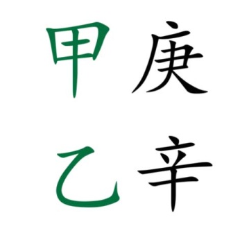 Так к примеру, янское Дерево либо иньское Дерево (甲乙), если в столпе дня карты стоит 甲 или 乙,то они относятся к стихии Дерева, 甲 относится к янскому, 乙 к иньскому.