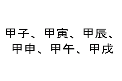 甲子、甲寅、甲辰、甲申、甲午、甲戌