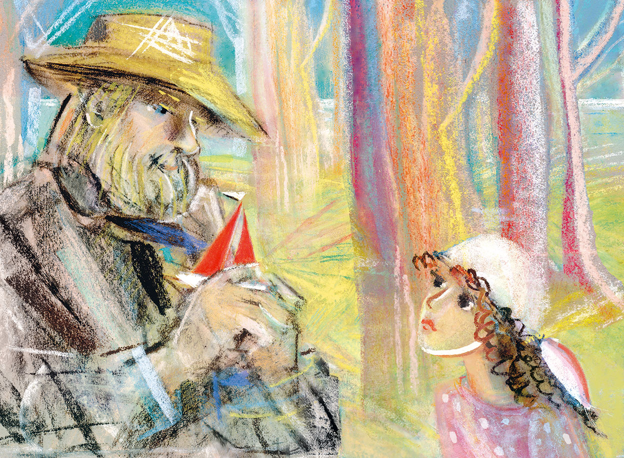 – Ну, вот… – сказала она, силясь овладеть дыханием, и ухватилась обеими руками за передник отца. – Слушай, что я тебе расскажу… На берегу, там, далеко, сидит волшебник…