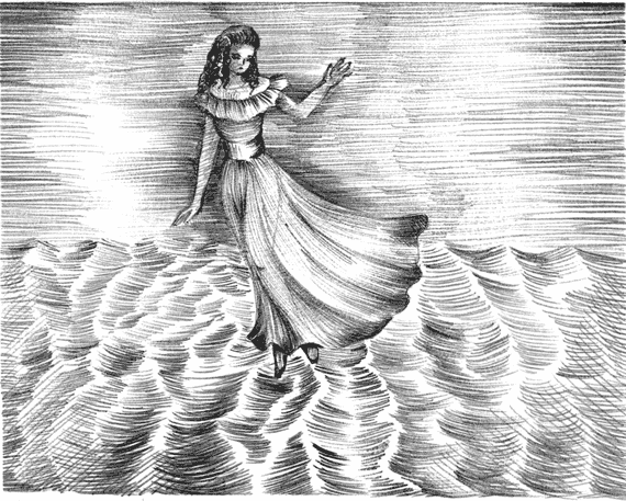 Она была на воде, невдалеке, с правой стороны, и ее медленно относило волной. Она отступала, полуоборотясь ко мне, и, приподняв руку, всматривалась, как если бы уходила от постели уснувшего человека, опасаясь разбудить его неосторожным движением. Видя, что я смотрю, она кивнула и улыбнулась.