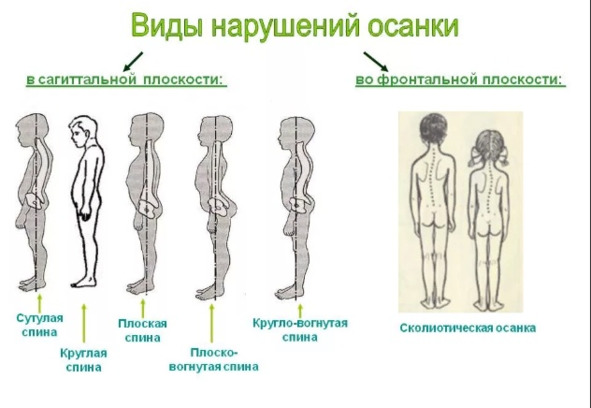 – Кифосколиотическая – сочетает сутулость и боковое искривление позвоночника.