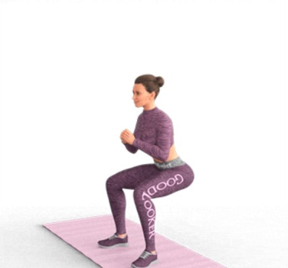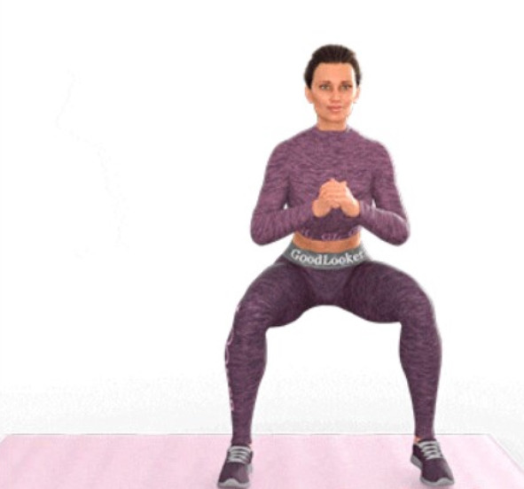 ИП: поза плие (ноги на ширине плеч), носки развернуть в разные стороны. Упражнение: