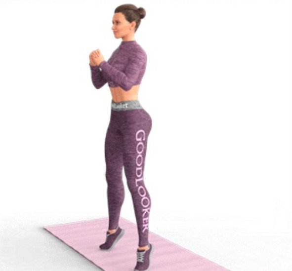 Исходное положение (далее в тексте – ИП): встать прямо, ноги поставить на ширине плеч, руки сложить на уровне груди. Как делать: