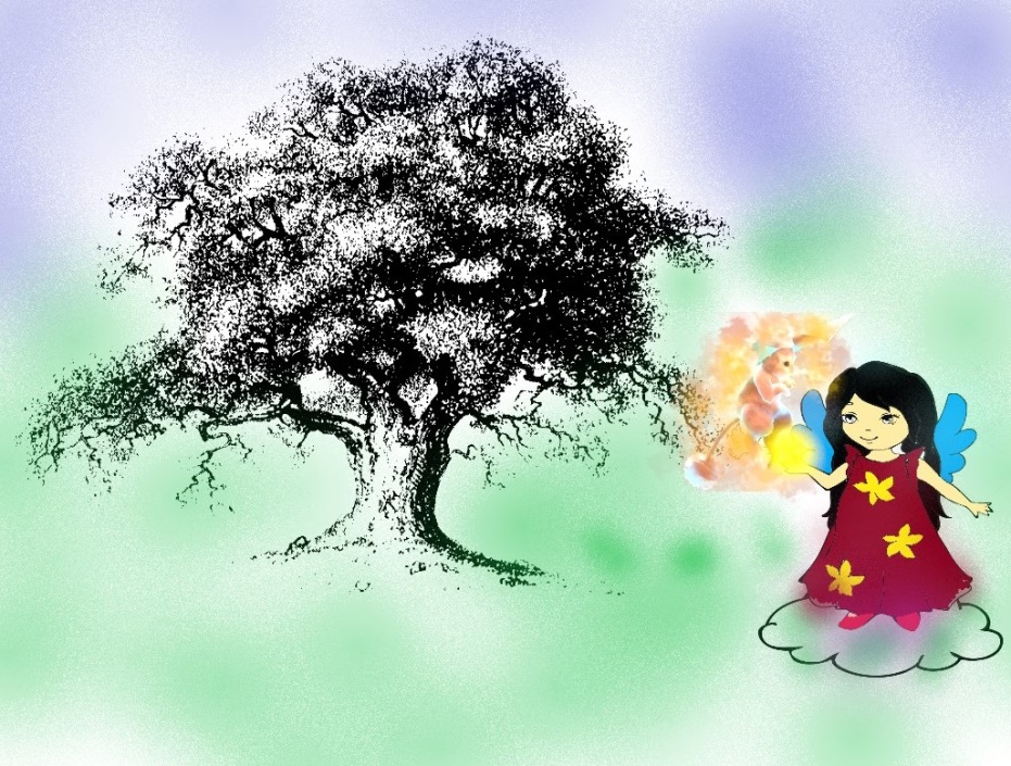 Мэри проснулась от того, что ей что-то мешало спать. Сев в кровати, она хотела было посмотреть, что же её разбудило, но замерла от удивления: на неё смотрело невероятное существо, парившее перед ней прямо в воздухе. Существо было похоже на небольшой светящийся пушистый шарик с длинными ушками. Выглядело оно мило.