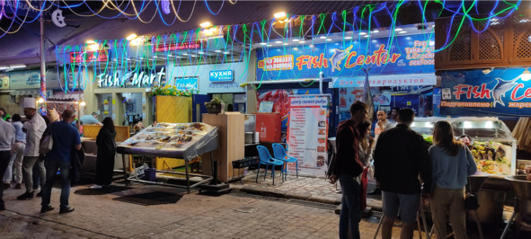 – Ммм, как вкусно пахнет! – восхитилась Ева. – Обязательно попробую рыбу! Правда, придётся постоять в очереди.