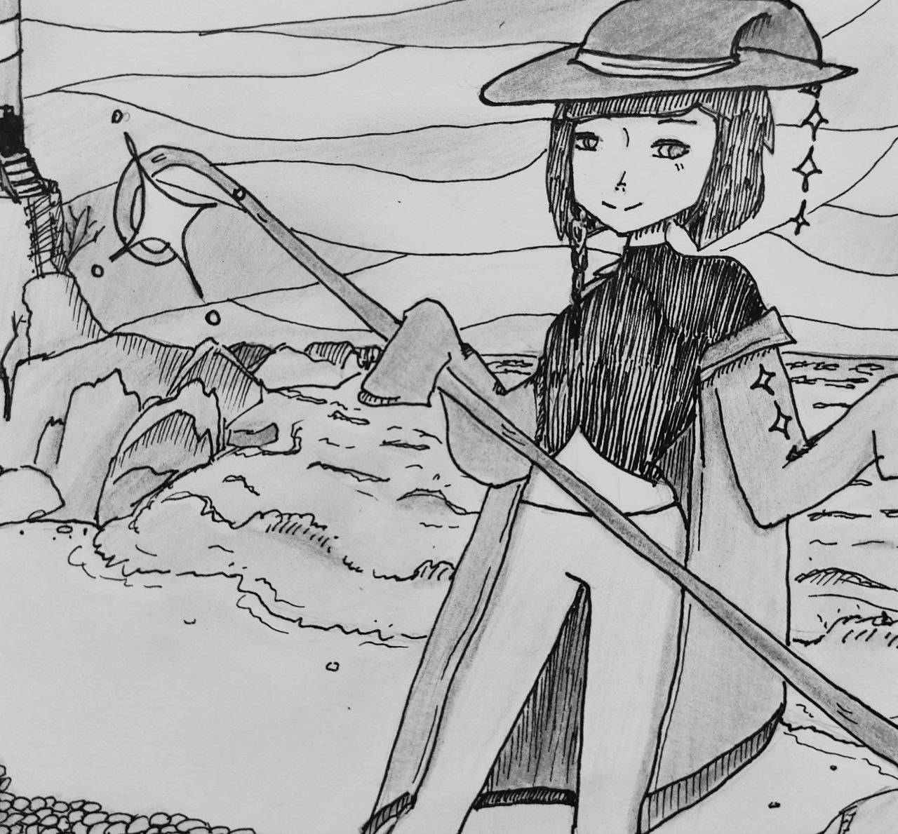 Позади меня стояла изящная девушка. Ее белоснежные волосы едва доходили до плеч, глаза были узкими, что подчеркивалось яркими «стрелками». На ней были узкие черные штаны из плотной ткани, белая рубашка, а поверх всего этого – мантия, украшенная белыми звездами. Ее голову венчала широкополая шляпа, которая явно была ей велика. «Ее» цвета были абсолютно нормальными, несмотря на то что мои кости почернели сразу же по прибытию сюда.