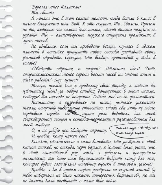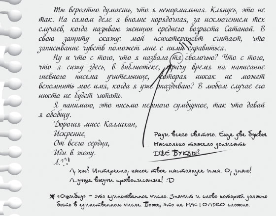 Потом я вижу их. Каракули, слова, комментарии. Кто-то ответил мне. Что еще хуже, кто-то исправил меня.