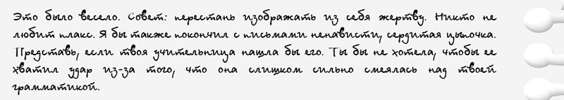 «Теперь, прежде чем я продолжу свою тираду, я хотела бы извиниться (нет) за любую ошибку, допущенную в этом письме, которые* ты никогда не получишь».