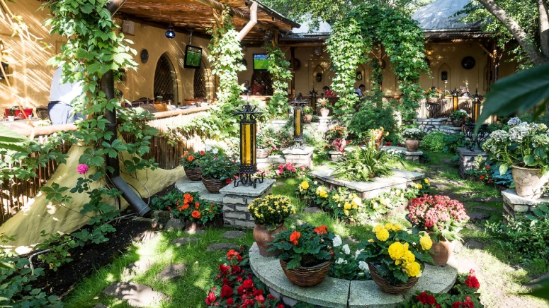 и цветов, под тихое журчание ручейка и периодическое пронзительное вскрикивание белого павлина. Небольшой зал при входе, веранда и зал, закрытый из-за пандемии, вот, тогда казалось, и все помещения ресторана. Ан нет!