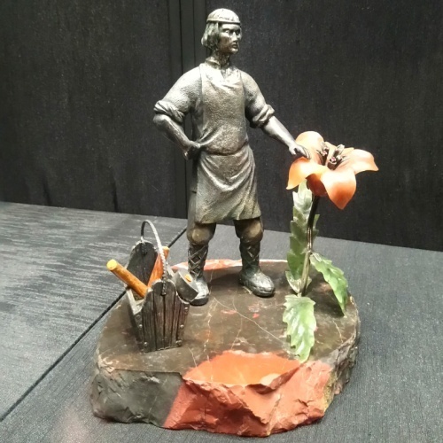 – История Уральского художественного литья из чугуна началась в тысяча семьсот сорок седьмом году с появления в небольшом городке Касли на Южном Урале первого чугуноплавильного железоделательного завода. Основал его купец из Тулы Яков Коробков. На Урале, а конкретно, в Челябинской области сошлось всё, что необходимо для производства чугуна – богатейшие запасы исходного сырья, древесины и первосортного формовочного песка. Развитие изящного чугунного литья связывают с появлением на заводе нового управляющего – Григория Зотова, сделавшего уникальную для того времени карьеру, пройдя путь от крепостного кричного мастера до главного управляющего заводом. Мировую известность Каслинскому литью принесла Всемирная выставка в Париже в тысяча девятисотом году, где была представлена интереснейшая работа – чугунный павильон26. Он получил наивысшие награды выставки – хрустальный Гран-при и большую золотую медаль. Традиции каслинского литья – графическая чёткость силуэта, скульптурная точность каждого штриха, сочетание тщательно проработанных деталей и обобщённых плоскостей с энергичной игрой бликов на их изломах, доскональные очертания даже мельчайших элементов изделия, покрытие готовых изделий чёрной краской особого рецепта, так называемая голландская
