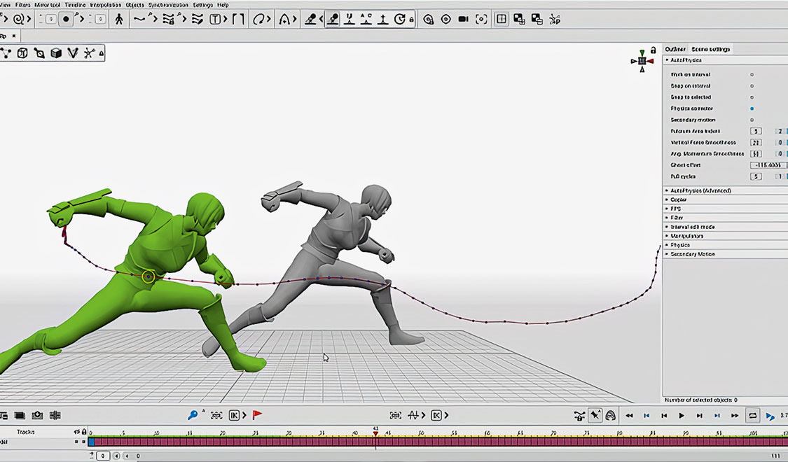 Сейчас и камеры, и датчики, и самого каскадера заменит программа, которая так и называется: Cascadeur (рис. 9). С ее помощью вы сможете создавать чрезвычайно реалистичные анимации: программа самостоятельно, без вашего участия, учтет центр тяжести персонажа, инерцию движения и параболические траектории. Еще более простой путь анимирования 3D-персонажей лежит через онлайн-сервис Mixamo, в каталоге которого вы сможете найти невероятное количество уже созданных анимаций, скачать любую понравившуюся лично вам и применить ее на своем персонаже.