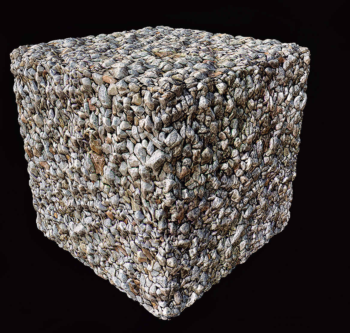 При создании этой модели скульптор не использовал отдельные полигоны для каждого камешка. Это просто куб с наложенной на него PBR-текстурой