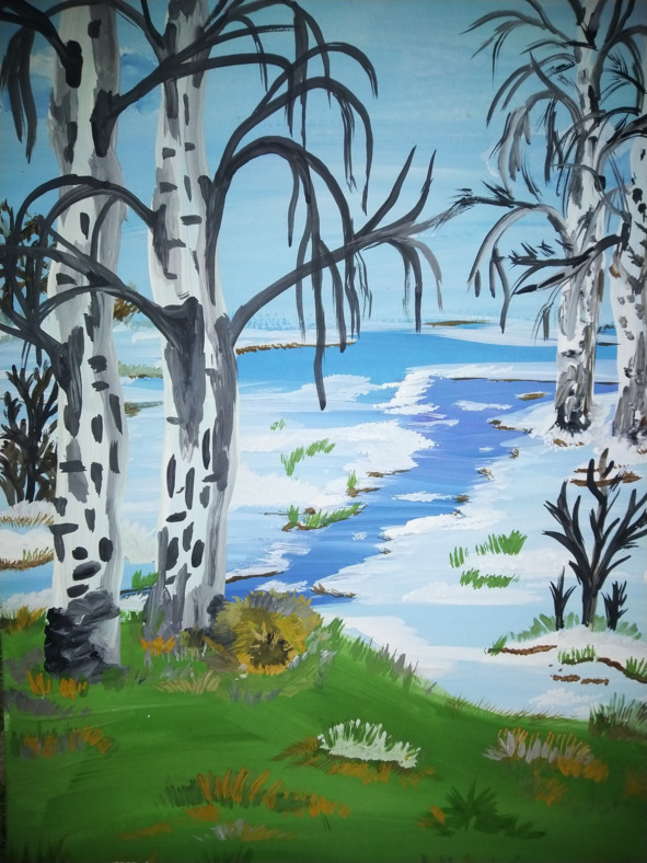 Немного размявшись, ежик разбаррикадировал вход в норку и полез наверх. В носик ударил вкусно пахнущий весенний воздух. Стало весело, и еж зажмурился. Сверху донеслось карканье. Ежик задрал голову и солнце ласково ослепило его сквозь ветки березы.