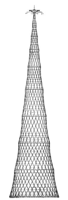 Построенная им в 1919–1922 годах радиобашня на Шаболовке (называемая Шуховской) до сих пор считается одним из высших достижений отечественного инженерного искусства. Тогда этот район столицы был тихой одноэтажной окраиной, а радио – свежим свидетельством технического прогресса и самым актуальным средством массовой информации. Необыкновенная футуристическая конструкция из ажурного металла, взметнувшаяся к небесам среди старых домиков, была призвана зримо символизировать революционное обновление мира.