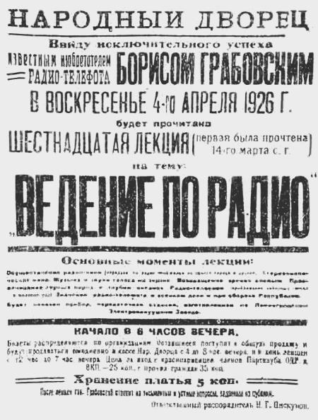 Первый успешный опыт передачи движущейся картинки состоялся уже в СССР. 26 июля 1928 года в Ташкенте на базе трамвайного треста изобретатели Борис Грабовский и Иван Белянский представили устройство, которое они назвали «радиотелефот». Первым героем телепередачи таким образом стал Белянский, чье изображение было передано при демонстрации изобретения. А первой в мире «телевизионной дивой» при следующем показе – супруга Грабовского. Специальная комиссия, присутствовавшая при опытах, составила протокол, где было зафиксировано, что эксперимент прошел успешно и на передаваемых изображениях можно было распознать лица, несмотря на помехи и пока еще невысокое качество изображения. По основным принципам действия «радиотелефот» был близок к современным телевизионным технологиям.