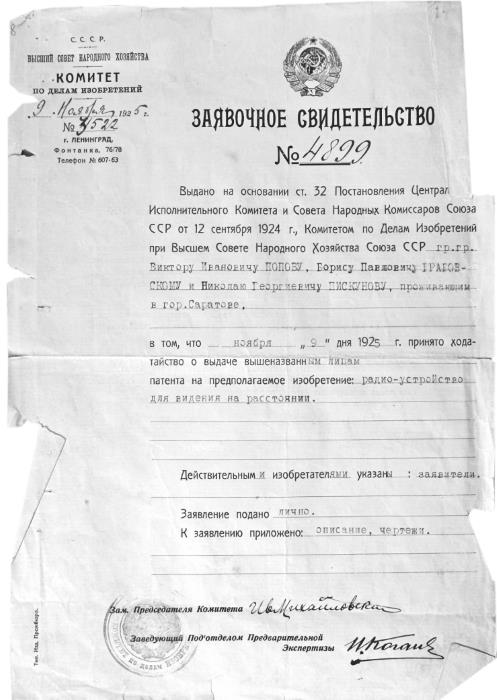 Телевидение, как и радио, впервые появилось в Российской империи. Первый в истории патент на технологию электрической передачи изображения был выдан Борису Розингу, профессору Санкт-Петербургского технологического университета.