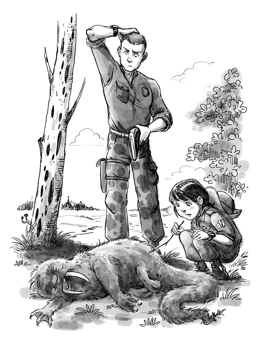 Лиза сидела на корточках возле поверженного «бобра», все смелее тыкая его пальцем в бок.