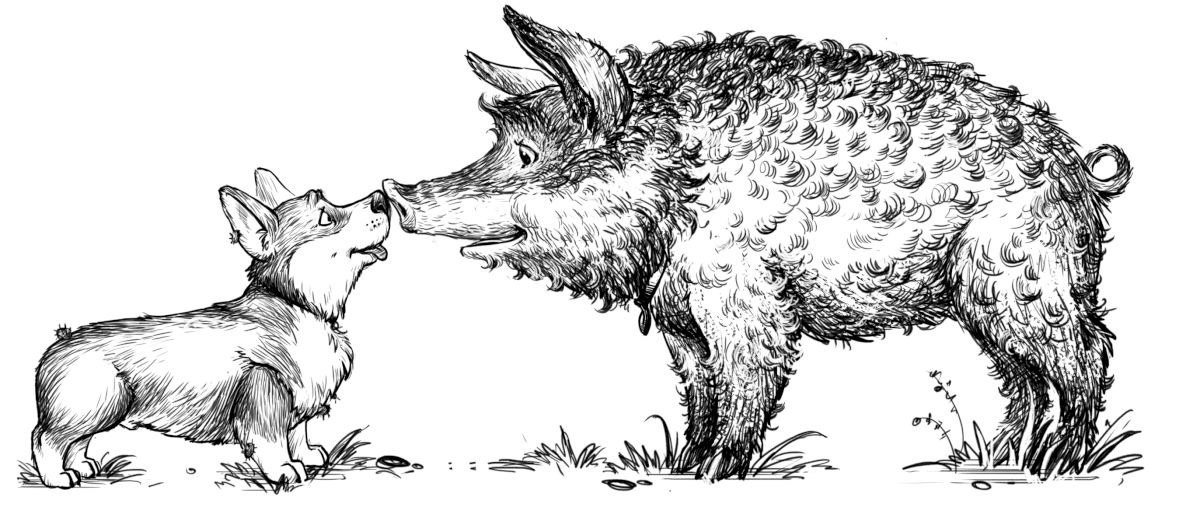 – А нам тетя Трикси собаку взять не разрешила! – с завистью сказала Лиза, когда лесники подошли ближе и принялись обуваться, а песик со свинкой – дружески обнюхиваться.