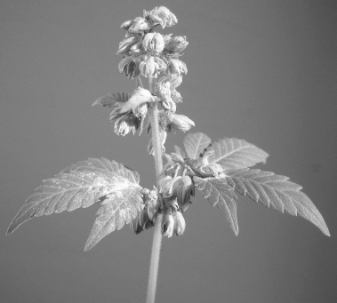Bei monözischen Cannabispflanzen entstehen die weiblichen Blütenstände übrigens an den Spitzen von Seitentrieben, was ein sicheres Unterscheidungsmerkmal darstellt. Männlicher Flor monözischer Hanfpflanzen entspringt dagegen den Blattachseln (vgl. Abb. 11-13).