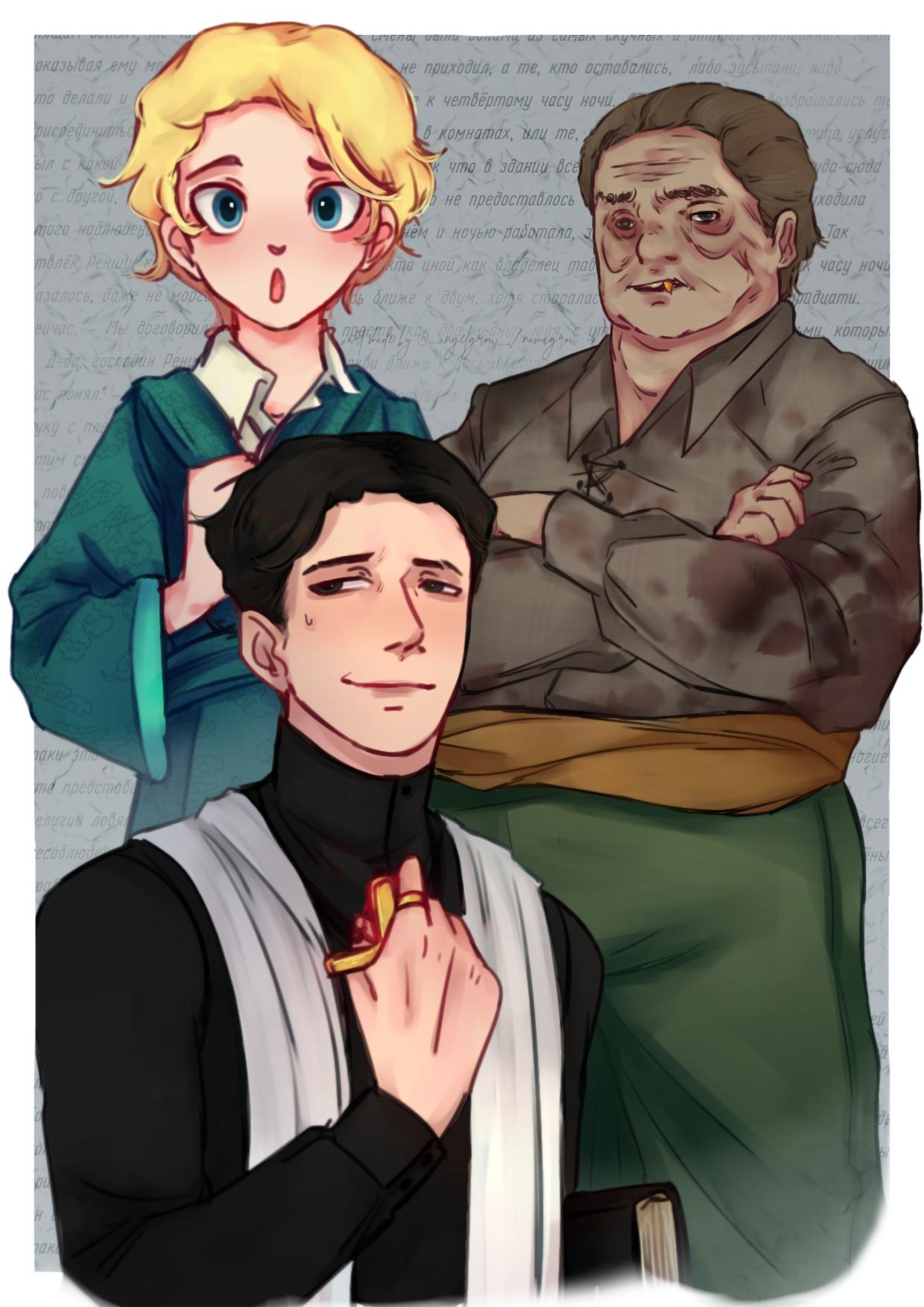– Отстань. – буркнули ему под смешок, как тут перед ними появился священник. Достаточно молодой паренёк лет двадцати трёх, в робе, соответствующей его статусу. Парнишка был очень рад видеть свою «даму сердца», однако быстро отпрянул, заметив возвышающуюся фигуру Реншу рядом. Всё-таки черноволосый богемник был ближе к самой женщине ростом, обладая гордыми сто шестидестью сантиметрами роста и не слишком комплексовал по этому поводу, однако на фоне «шкафа», коим по мнению Гроу был русоволосый Реншу – явно проигрывал, о чём заметно переживал.