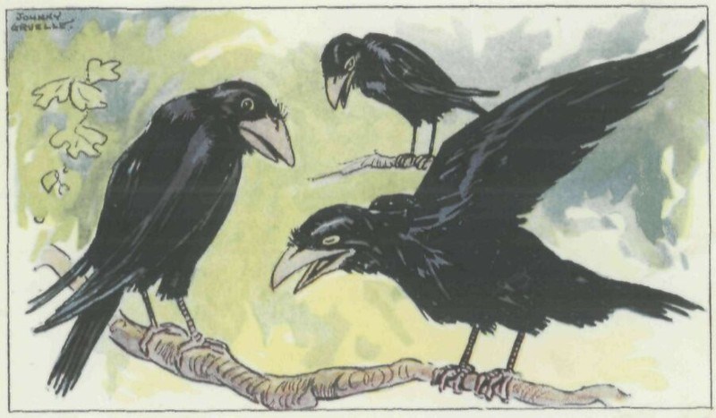 "I know where there is a box full of ice cream!" cried the second crow. "Aha! My brother, where?" asked the third crow.