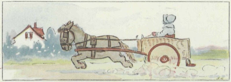 Then Dickie ran back home and had some more ice cream and candy, and asked Daddy if he might take some of the golden pennies downtown and buy something, and Daddy Dorn said: "Of course, Dickie Dorn, for they are your golden pennies." So Dickie took two handfuls of the golden pennies downtown and bought a fine little pony with a little round stomach, and he bought a pretty pony cart and harness. Then Dicky drove the pony back home.