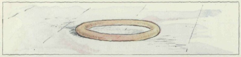 They rapped upon the attic door. All was quiet within. Timidly they opened the door and looked in. There upon the floor lay an old rusty iron ring. It was the Fairy Ring.