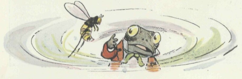 TINKY-TINKY-TINK!"GRUMP! GRUMP!" said a deep voice from inside the tin can house. Billy Bumblebee peeped through a chink in a window, and saw a hoppy-toad with his mouth full of pancakes.