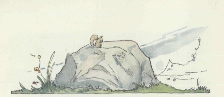 A great rough stone lay beneath a gnarled old tree. Years ago a tiny squirrel had climbed upon the stone to nibble some nuts, but before he had finished he was startled away.