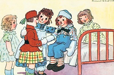 Introduce Raggedy Andy to Raggedy Ann, dear Johnny. Let him share in the happiness of your household.