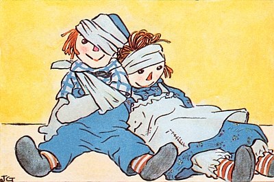 Having nothing but painted or yarn mouths, the ailments of Raggedy Andy, Raggedy Ann, Uncle Clem and Henny, the Dutch doll, mostly consisted of sprained wrists, arms and legs, or perhaps a headache and a toothache.