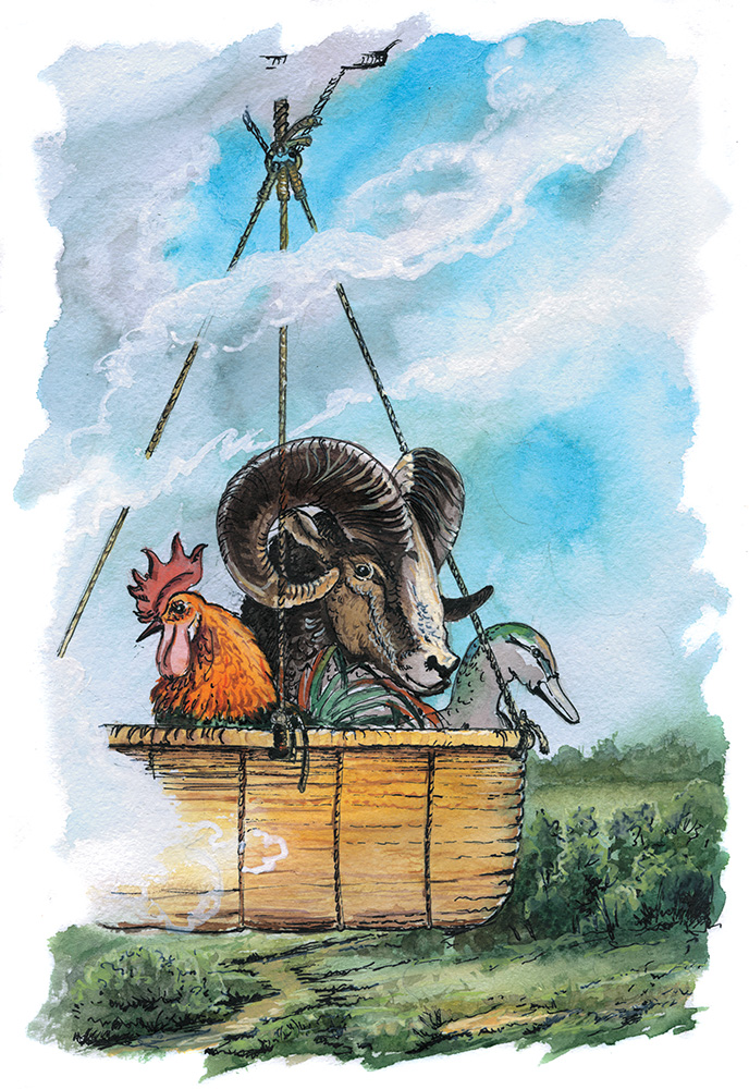 Это было первое на свете воздушное путешествие. Оно продолжалось целых восемь минут. Животных пустили первыми потому, что никто не знал, что ждет человека на высоте.