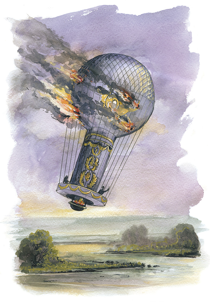 Аэростат загорелся, а Пилатр де Розье упал и разбился вместе со своим спутником. Так погиб в полете первый в мире воздухоплаватель.