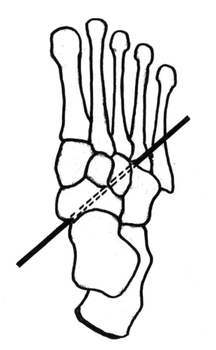 La referencia para una posición del pie dentro del plano sagital es una línea imaginaria -transversal- a través del talón; si el antepié está por debajo de la línea (transversal imaginaria), se le considera plantiflexionado; si está por encima, dorsiextendido.