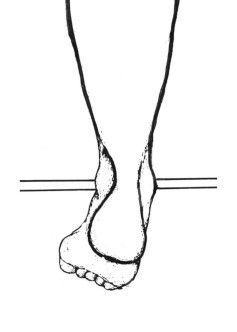 Si el antepié está en el plano sagital por debajo de la línea transversal imaginaria que atraviesa el talón, esto se denomina “pie equino”. La palabra "equinus" se deriva del latín "equus" (caballo). Se refiere a la apariencia similar a una pezuña del pie. El talón está levantado, solo el antepié toca el suelo.