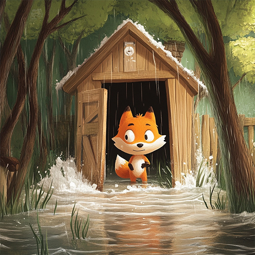Однажды весной, когда снег начал таять, река стала выходить из берегов – вода начала постепенно прибывать к домику Лисы, до порога оставалось совсем чуть-чуть. Испугалась хозяйка. Делать нечего, нужно помощь просить.