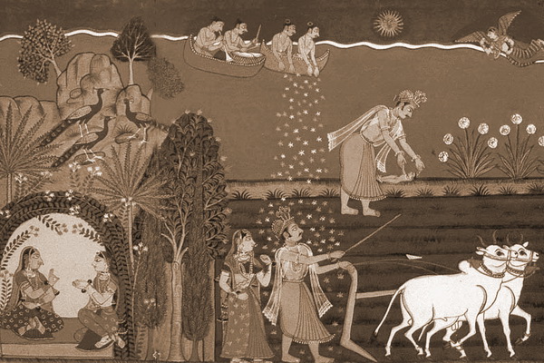 На карте Центральной России разбросано множество рек и озер, носящих индийские имена. Путешествуя по Поволжью в фольклорных экспедициях, я постоянно встречал санскритские гидронимы: Кама, Сура, Мокша, Арья, Сита, Тара, Нара, Равана и т.п. Сама Мокша имеет несколько притоков, основные среди которых – Вад, Сатис и Атмис – имеют очевидную аналогию с санскритом. Еще более удивительно, что имена русских рек можно обнаружить на страницах древнеиндийского эпоса Махабхарата, где они именуются «священными криницами». Земля, где разворачиваются главные события эпоса – территория северно-индийского штата Уттар Прадеш – является местом слияния двух священных рек – Ганги и Ямуны. От них исходит множество водных артерий, среди которых узнаются гидронимы притоков Волги – священной реки земли русской.