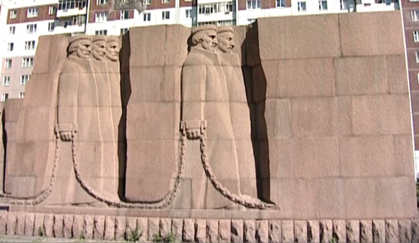 Памятник стелла политкаторжанам. Царское правительство гнало их пешком через всю Россию на остров Сахалин