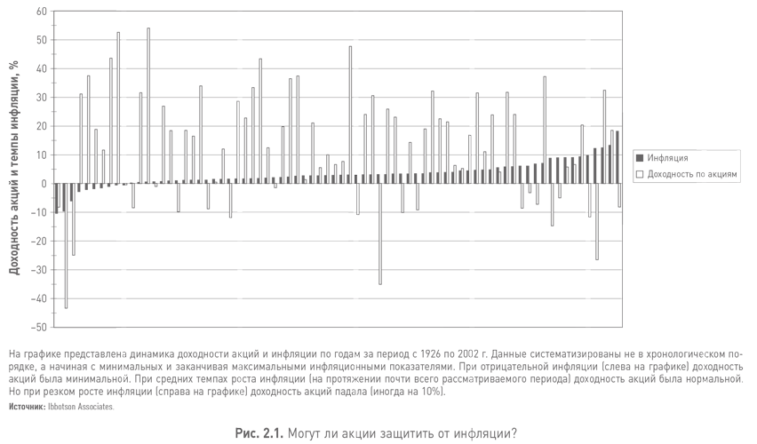 На рис. 2.1 показано соотношение инфляции и цен акций за период с 1926 по 2002 г.