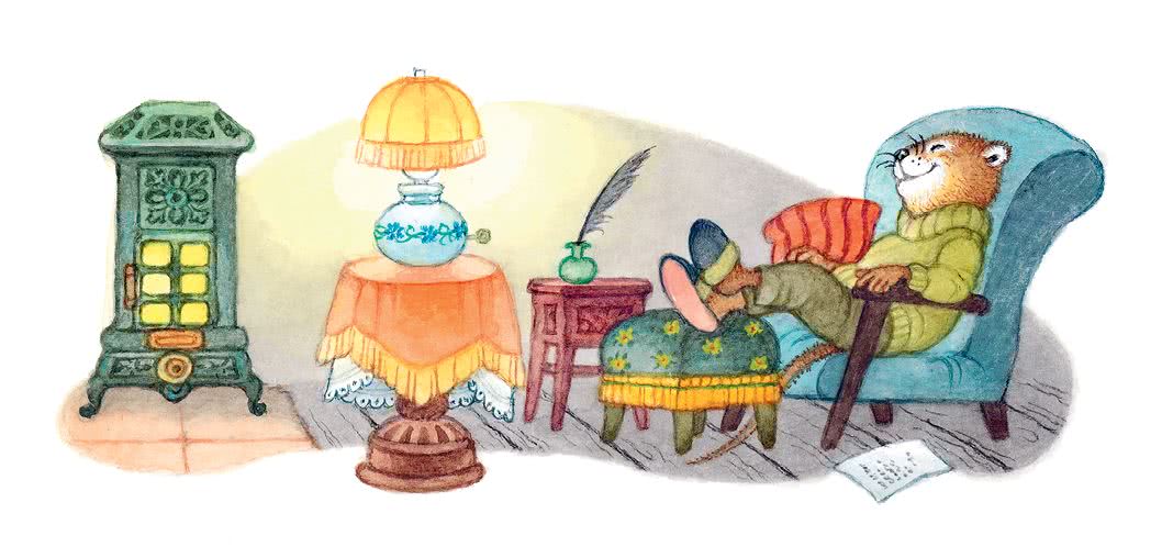 Зимой дядюшка Рэт много спал: рано ложился, а по утрам вставал очень поздно. В течение короткого дня он сочинял стихи или занимался какими-нибудь другими домашними делами, и, конечно, кто-нибудь из зверей постоянно заглядывал к ним поболтать. Само собой, было много рассказов, полных интересных наблюдений и всяких удачных сравнений, все пускались в воспоминания о лете и о том, каким оно выдалось.