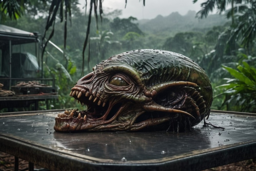 – Это трясоформка. Самая тяжёлая добыча на этой планете, потому что капец какая юркая. Вот, ее голова, – и протягиваю Кире.
