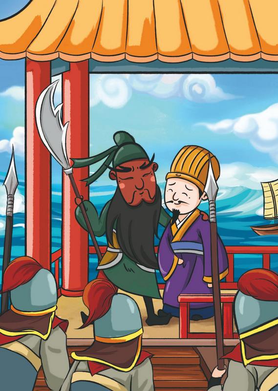 Вот так, крепко стиснув ладонь Лу Су, Гуань Юй привел его на берег Янцзы. Корабль из Цзинчжоу как раз пристал к берегу. Гуань Юй одним прыжком забрался на судно, а потом почтительно сложил руки в знак прощания и отчалил.