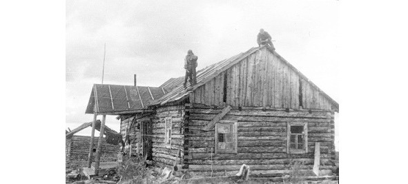 Можно еще рассказать о «гостях», которые посещали этот «эталонный» участок. Первыми высадились «мирнинцы» – небольшой отряд из трех молодых парней (геолога, радиста и рабочего) высадился у фабрики, а затем сплавился к основному поселку. Мы встретили их радушно, как положено на Севере. Поселились они в соседней с нашей большой комнате. Радист влез на крышу и воткнул в угол шест для антенны, при этом просто-напросто пробил рубероид, чем поразил меня своей «простотой». И, конечно, когда пошел дождь, через крышу протекло на чердак а с него в нашу комнату. Пришлось лезть и чинить.