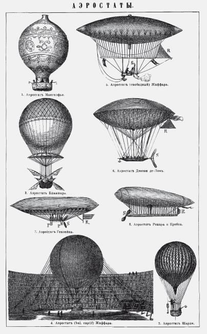 Виды аэростатов из «Энциклопедического словаря» Брокгауза и Эфрона