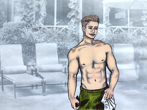 Дальше, полетела тяжёлая артиллерия, в виде задних точек Паши и Саши. Релакс был окончен, и дабы сберечь голову, девушка проплыла к дальнему углу бассейна и вынырнула на поверхность. На лежаках она увидела хохотавших подруг, а за ними, по дорожке из дома, шёл он. Аполлон Машиных грёз, во всей своей красе.