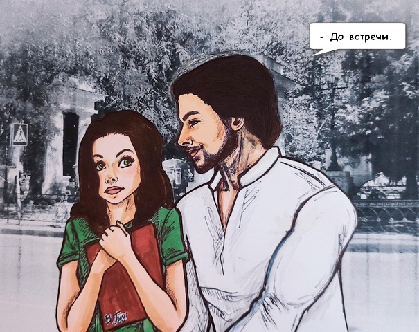 Лев положил свою руку на плечо Алисы, и лёгким свечением из ладони, пробудил её. Всё вокруг окрасилось красками, ночь сменилась днём, девушка ожила и вышла из транса. Она удивлённо осмотрелась по сторонам и остановилась на парне. Восторг охватил разум. Это он, тот самый Лев, тот самый, что с первого взгляда закружил в вальсе. Вот он перед ней, во своей всей красе.
